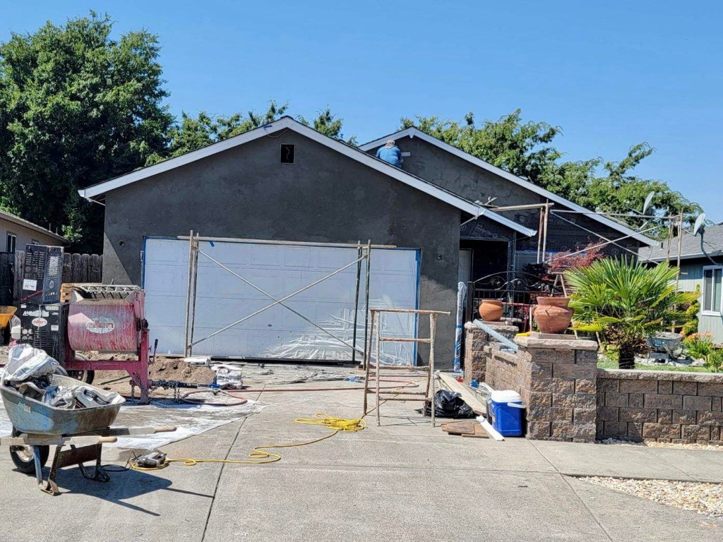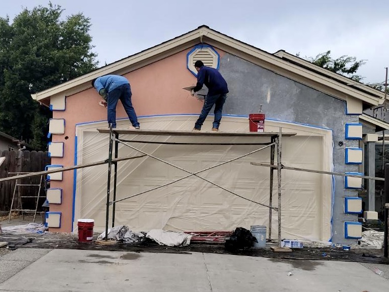 full residential stucco with roofing work